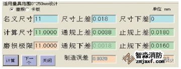 以殼體類零件經(jīng)常使用的工藝銷子孔φ11H7為例,根據(jù)《塞規(guī)、卡板的計算程序》計算所得(見圖2),計算產(chǎn)品被壓縮之后的: