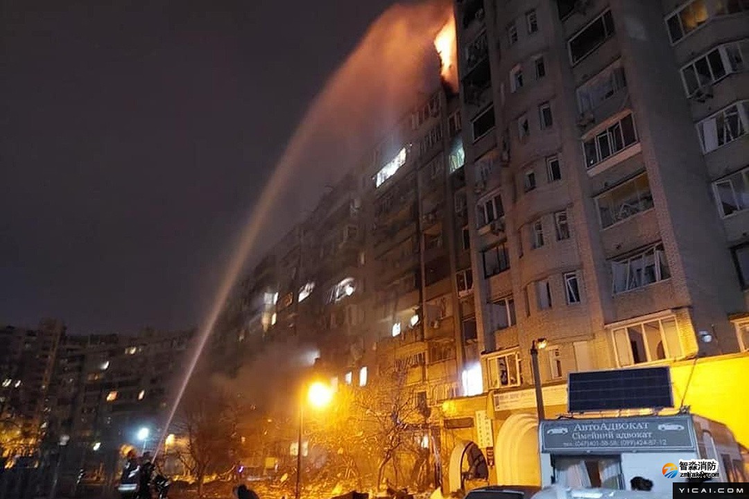 烏克蘭基輔一住宅樓遭炮擊引發(fā)大火 致8傷150人被疏散