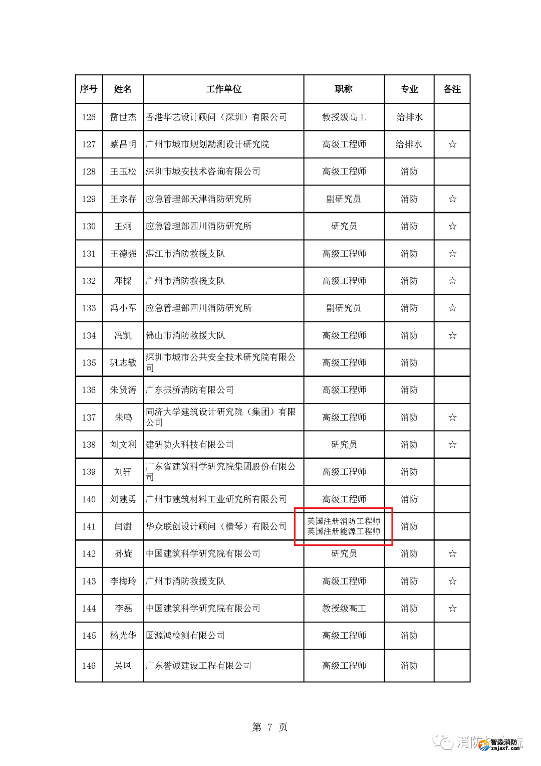 廣東省第一屆建設(shè)工程消防技術(shù)專家?guī)烀麊蔚墓荆河?a href="http://xaxhst.cn">消防工程師上榜!