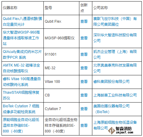 本次入圍獎(jiǎng)名單中共有8臺(tái)生命科學(xué)領(lǐng)域儀器,包括華大智造高通量樣本提取移液工作站、奧美泰克全自動(dòng)核酸提取儀、??聘咄孔詣?dòng)核酸純化系統(tǒng)、凱杰集成式納米芯片數(shù)字PCR、賽默飛核酸/蛋白定量熒光計(jì)、伯騰細(xì)胞成像多功能檢測(cè)系統(tǒng)、上海朗喜細(xì)胞程序復(fù)蘇儀、上海原能全自動(dòng)化超低溫生物樣本儲(chǔ)存系統(tǒng)。