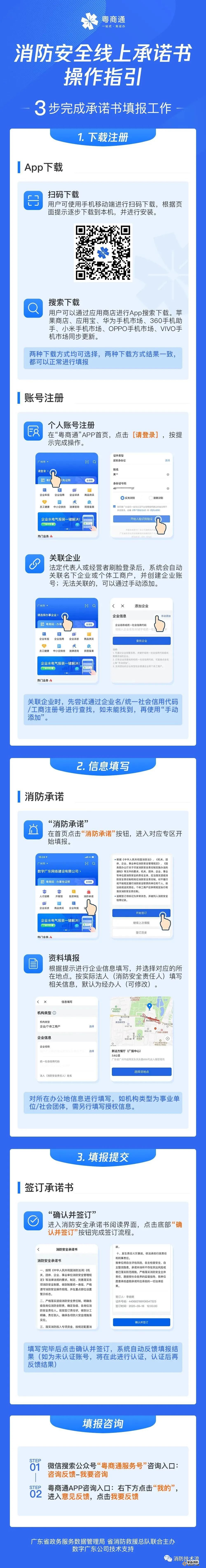 企事業(yè)單位自主登錄粵商通平臺(tái),自主開展平臺(tái)注冊(cè)工作,切實(shí)完善相關(guān)信息,簽訂消防安全承諾書。